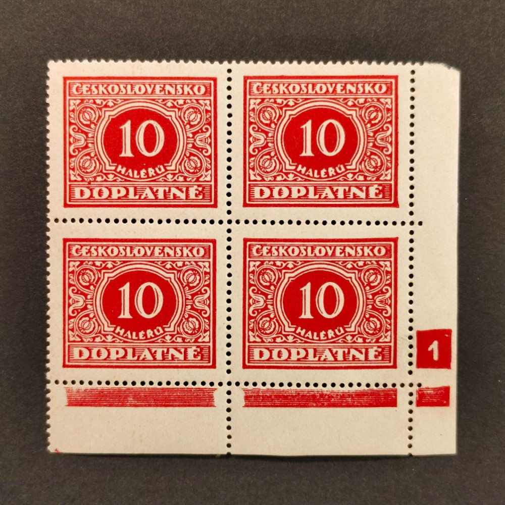 | Položka: | Čtyřblok ČSR, Pof.DL56**, 10h doplatní - definitivní vydání, 10hKatalogPofisDL56Nepoužitá, neražená, čistá známka/položka. |