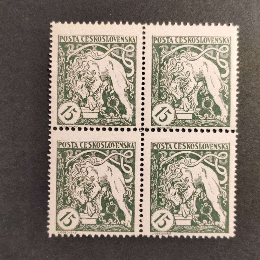 Čtyřblok ČSR, Pof.27B**, 15h legionářské - 1 výročí vzniku ČSR, 15h