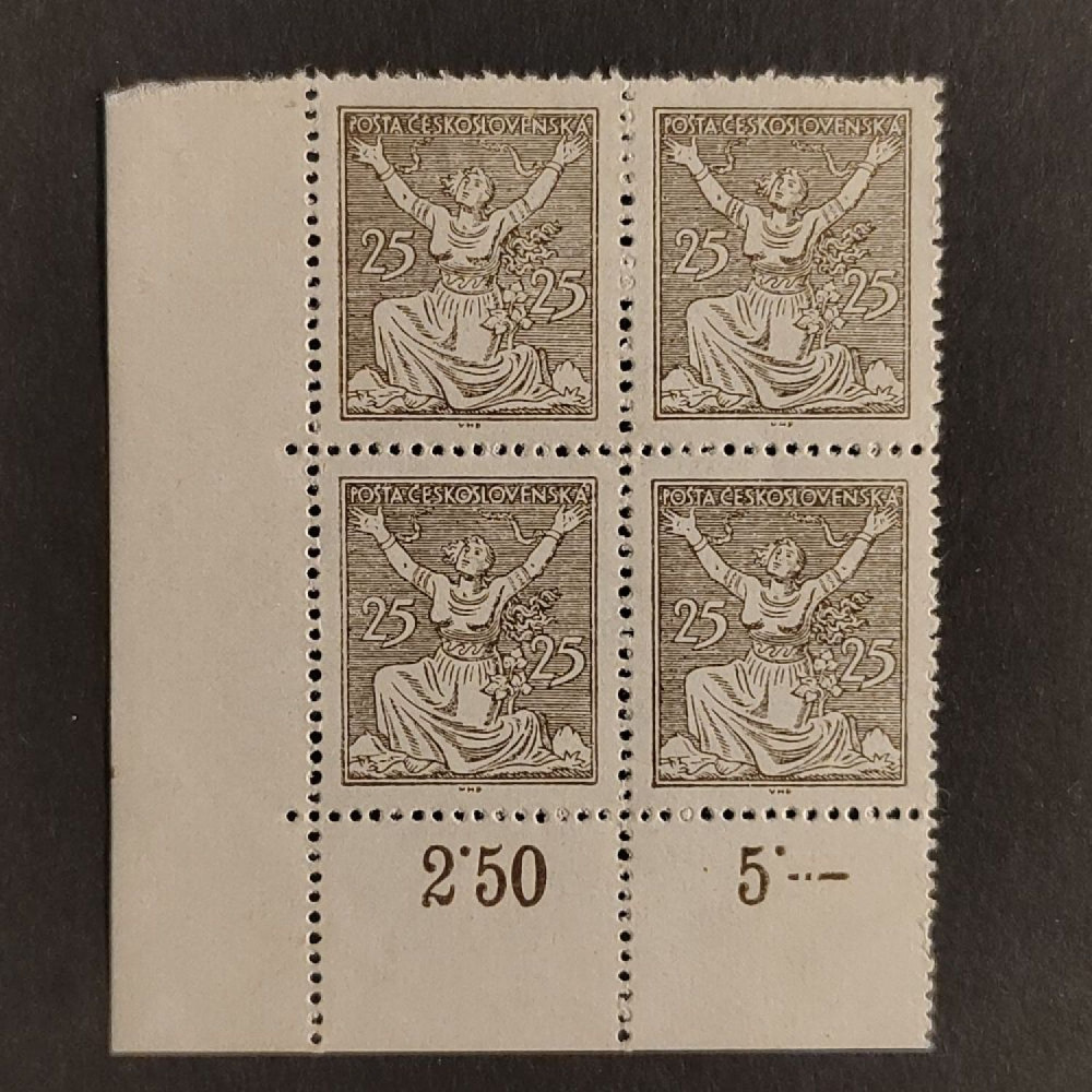 | Položka: | Čtyřblok ČSR, Pof.152*, 25hKatalogMichel171Pofis152Položka/známka nepoužitá, po nálepce. |