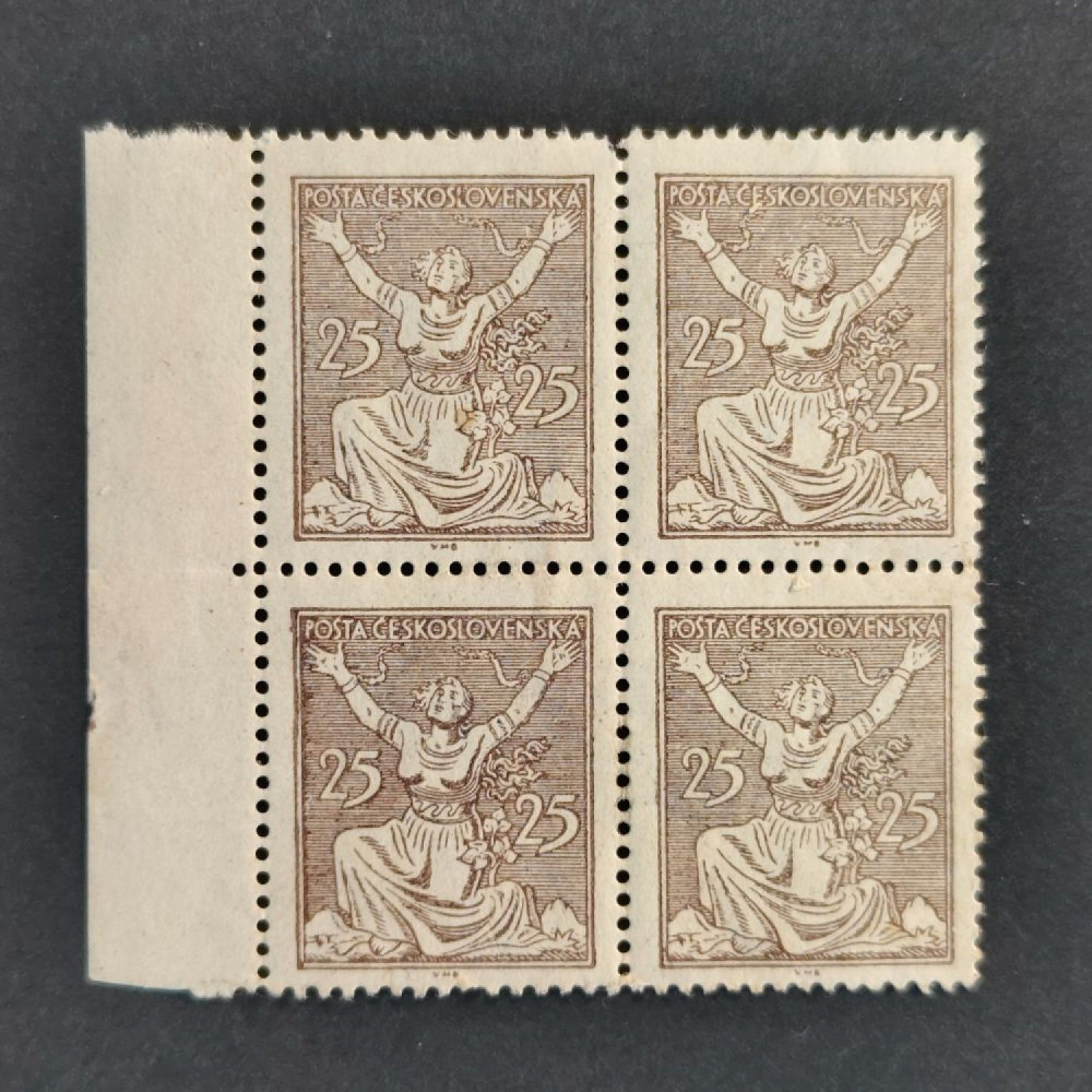 Položka:Čtyřblok ČSR, Pof.152**, 25h Osvobozená republika, 25hKatalogPofis152Nepoužitá, neražená, čistá známka/položka.