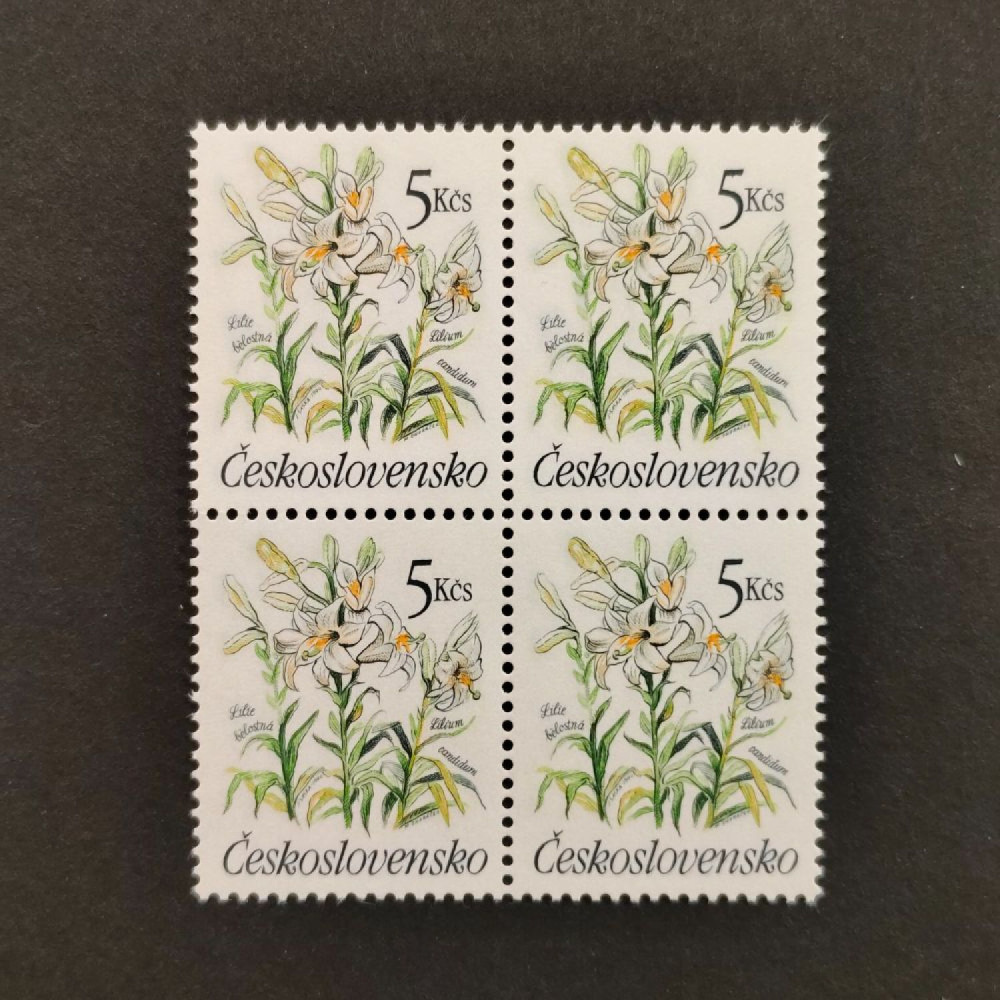 Položka:Čtyřblok ČSR, Pof.2933**, 5 Kčs, 1990 - Zahradní květiny, Madonna Lily (Lilium candidum), 5 KčsKatalogMichel3041Pofis2933Stanley Gibbons30162782Yvert2842Nepoužitá, neražená, čistá známka/položka.