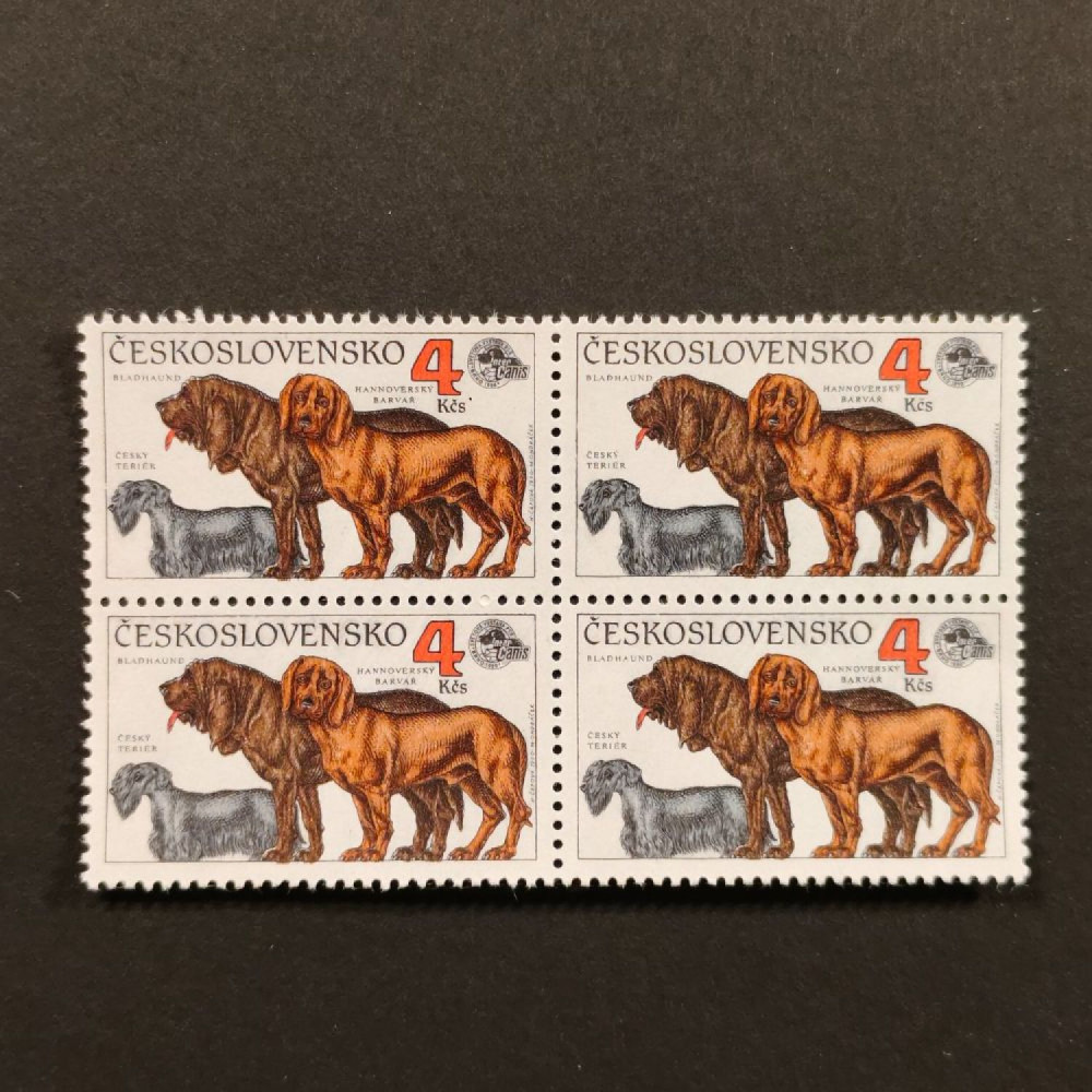 | Položka: | Čtyřblok ČSR, Pof.2949**, 4 Kčs, 1990 - Výstava psů Inter Canis, Brno, Český teriér, bloodhound a hannoverský medvědář, 4 KčsKatalogMichel3057Pofis2949Stanley Gibbons30322798Yvert2857Nepoužitá, neražená, čistá známka/položka. |