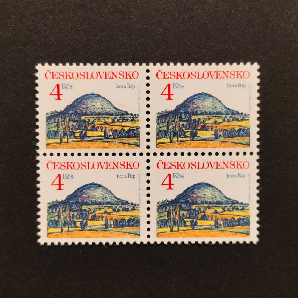 | Položka: | Čtyřblok ČSR, Pof.2984**, 4 Kčs, 1991 - Malebné výhledy, Říp Mountain, 4 KčsKatalogMichel3092Pofis2984Stanley Gibbons30662833Yvert2892Nepoužitá, neražená, čistá známka/položka. |