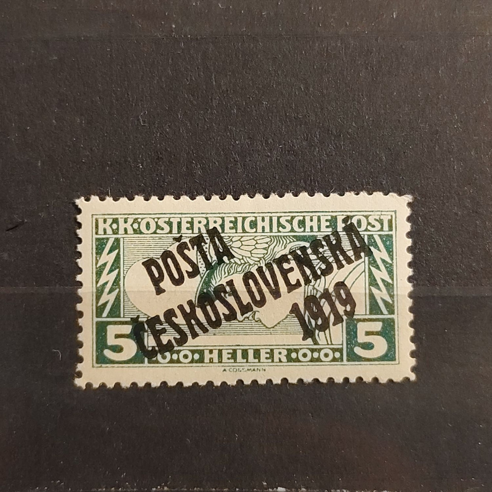 | Stamp Czechoslovakia Austrian Stamps of 1917 Overprinted in "POŠTA ČESKOSLOVENSKÁ 1919" 5h, Catalog Michel 70 Pofis 58A Stanley Gibbons 103 B36 MH/ Mint hinged stamp. | |