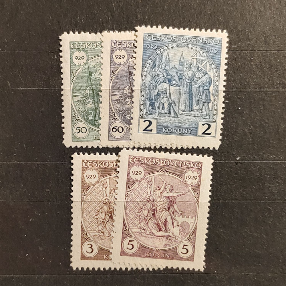 | Set Czechoslovakia St.Wenceslas 50h-5 Kč, Catalog Michel 283-287 Pofis 243-247 Stanley Gibbons 293-297 159-162 MH/Mint hinged stamps. | |