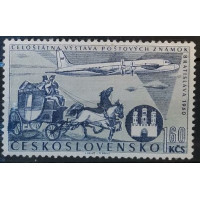 Czechoslovak airmail stamps of the second republic and post-war period document the continuation and modernization of air postal services. The category includes issues from the late 1940s onward reflecting new aircraft, routes, and postal systems.