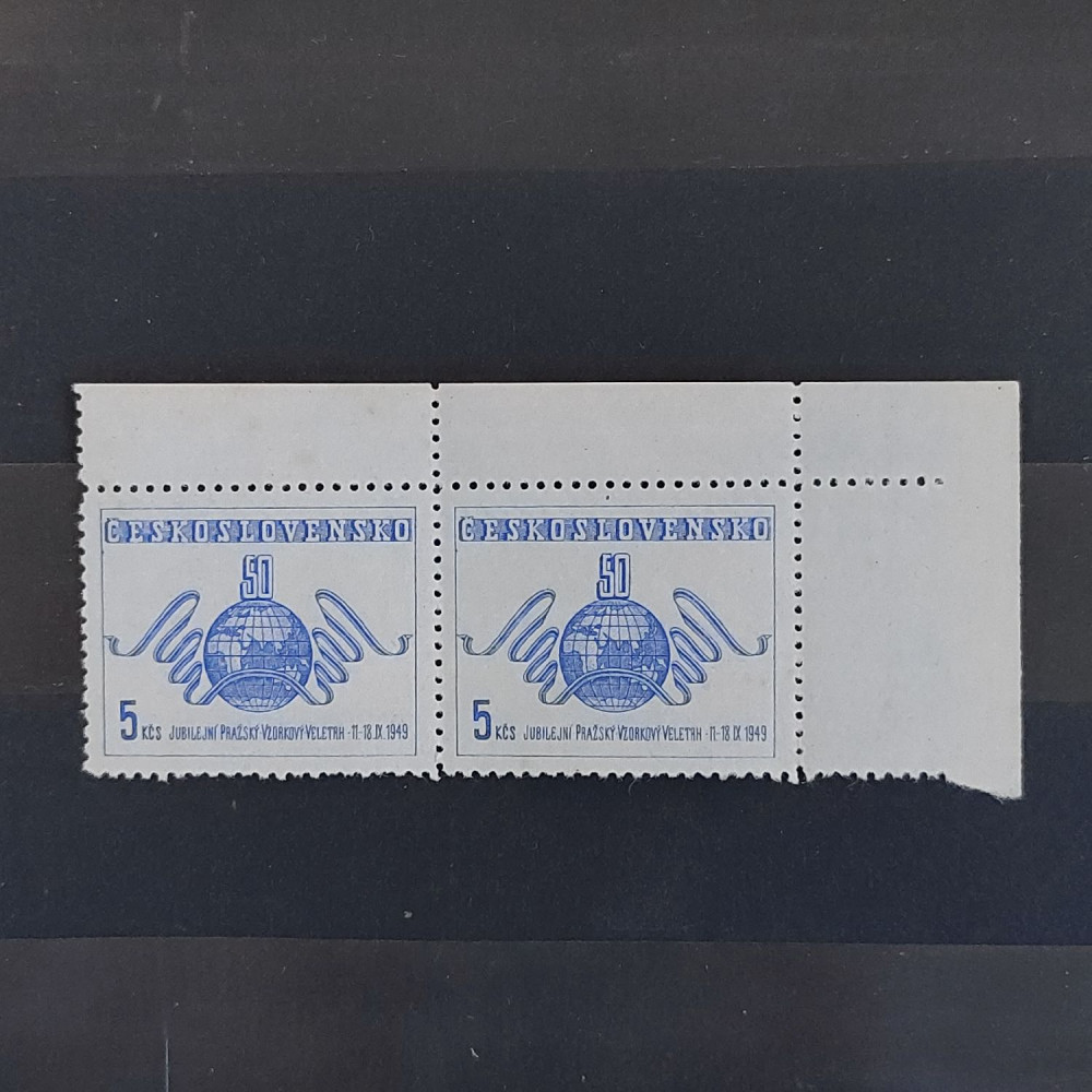 | Block of 2 Czechoslovakia 1949 The 50th Fair in Prague 5 Kčs, Catalog Michel 584 Pofis 520 Stanley Gibbons MH/ Mint hinged stamp. | |