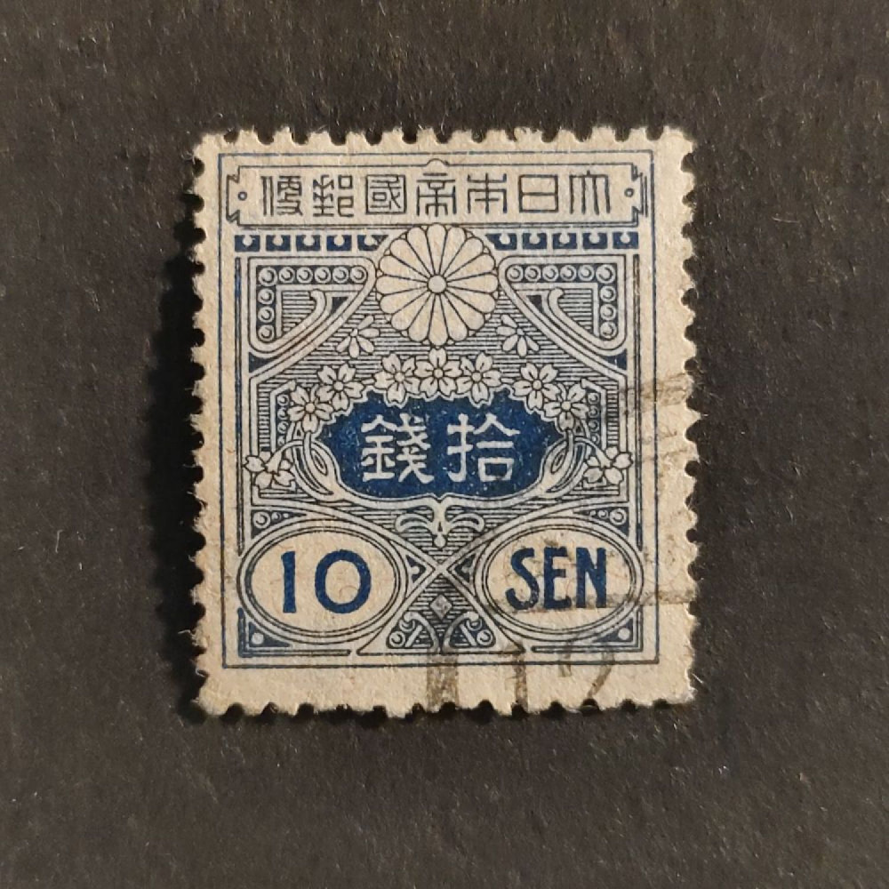Tags: Japan, Mi.117, Tazawa, 1914, blue, 10 sen, flowers, coats of arms