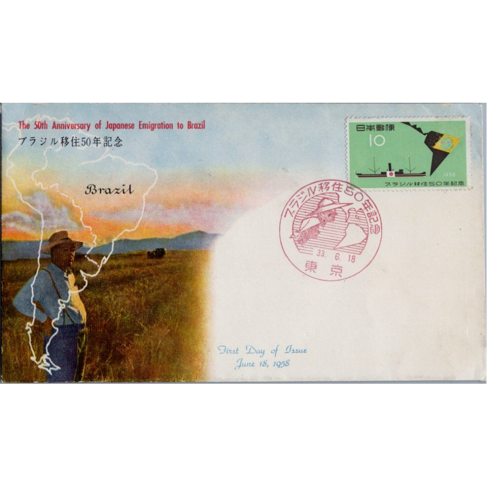 FDC Japonsko, Mi.684 (SG 782)**, 10 ¥, 1958, 50. výročí japonské emigrace do Brazílie, 10 ¥