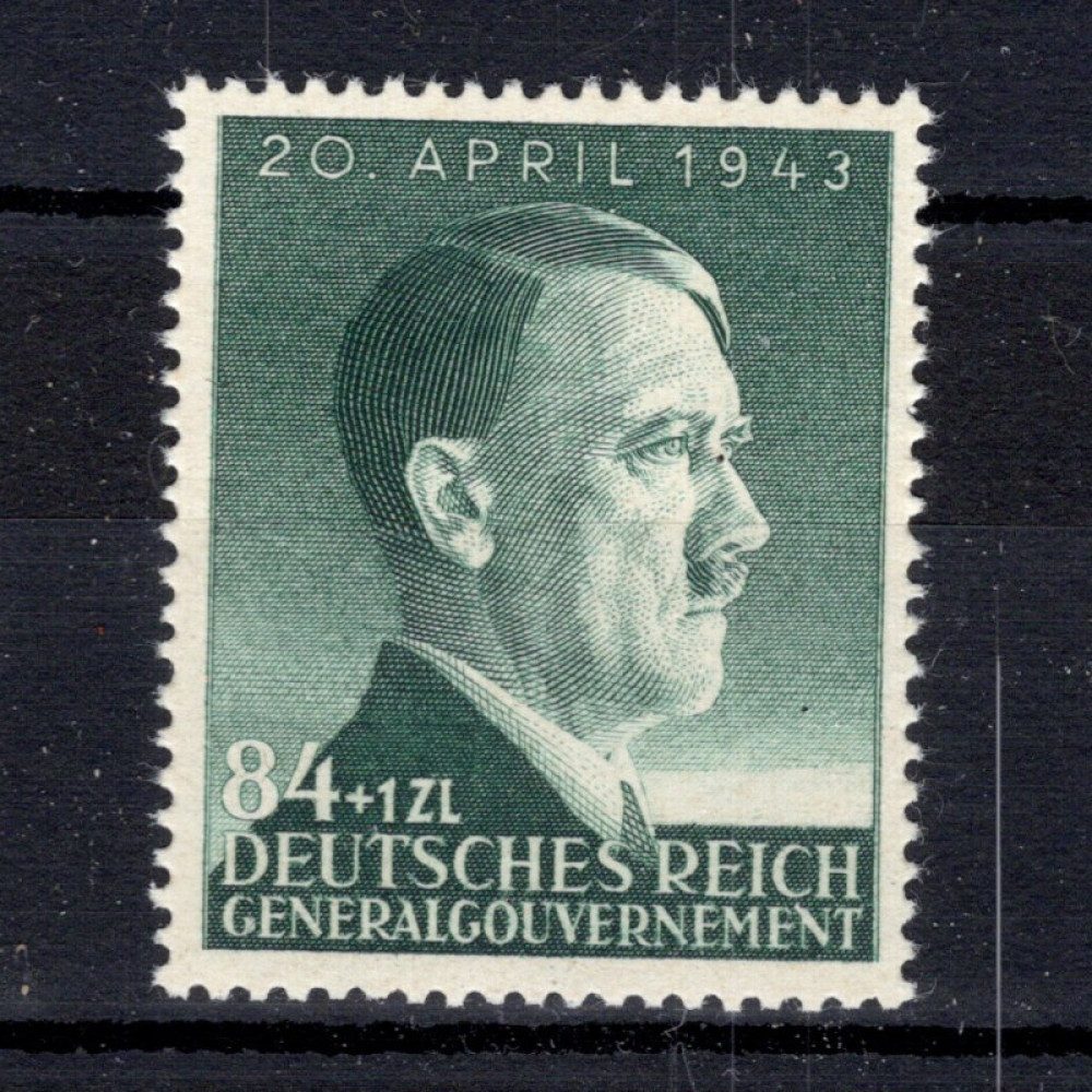 | Položka: | Známka Generální gouvernement, Mi.103 (SG 458)**, 84 gr, 1943 - 54. výročí narození Adolfa Hitlera, Adolf Hitler, 54. narozeniny, 84 grKatalogMichel103Stanley Gibbons458NB26Yvert114Nepoužitá, neražená, čistá známka/položka. |