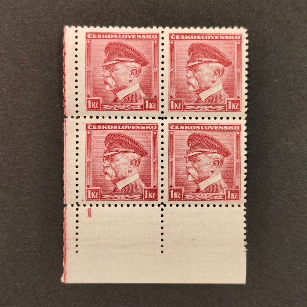 Rohový čtyřblok ČSR, Pof.303**, 1 Kč