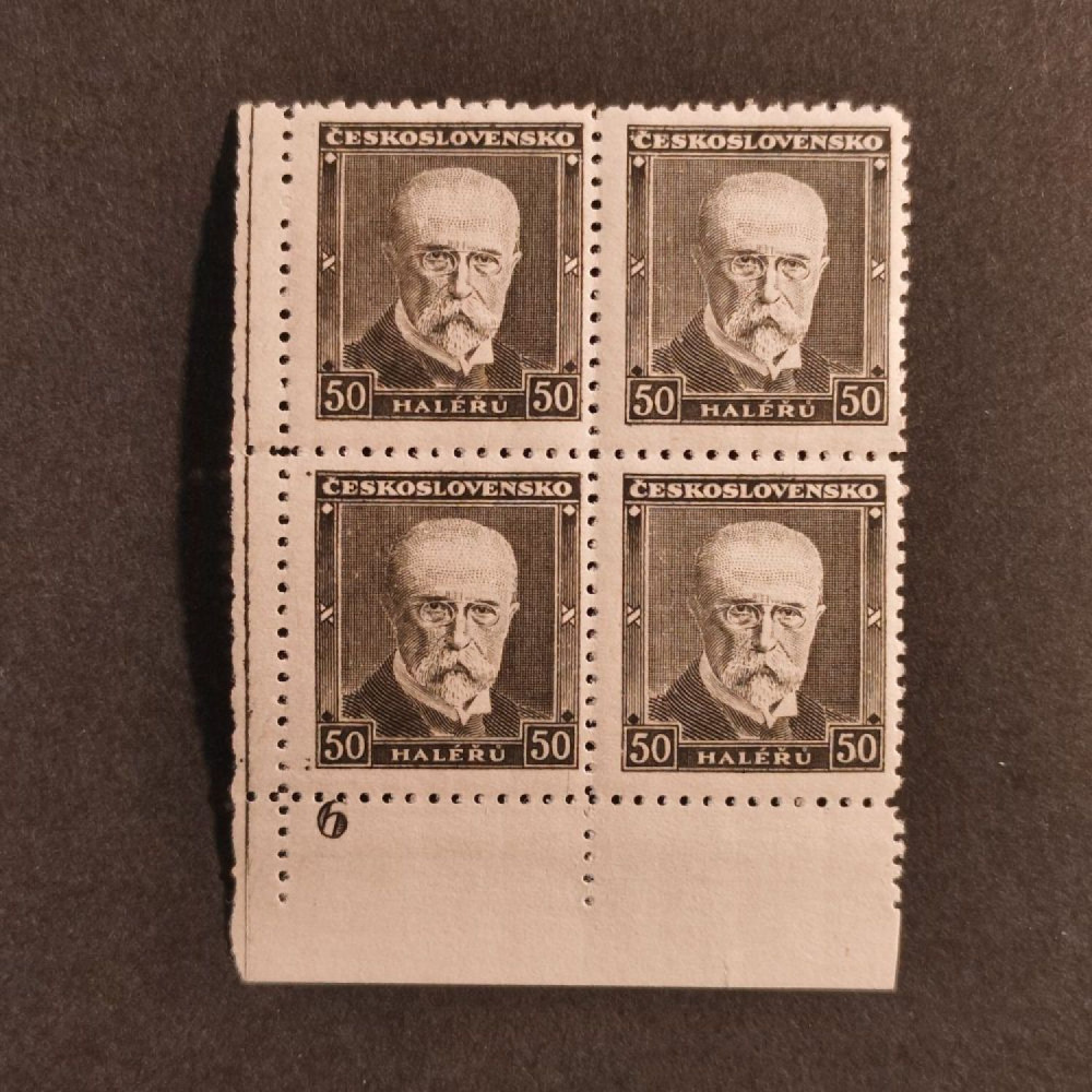 Položka:Rohový čtyřblok ČSR, Pof.324**, 50h smuteční - úmrtí T.G.Masaryka, 50hKatalogPofis324Yvert331Nepoužitá, neražená, čistá známka/položka.