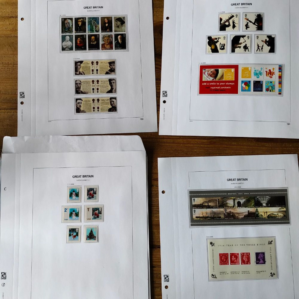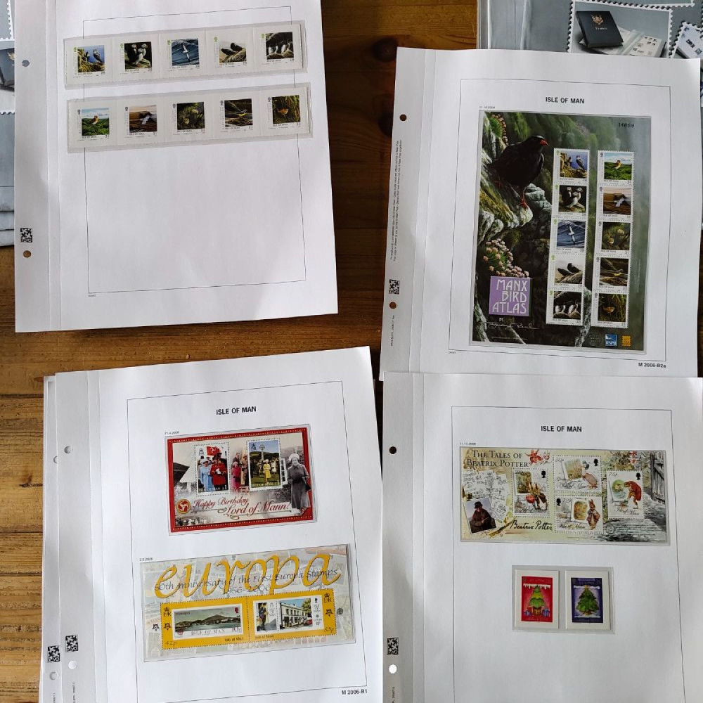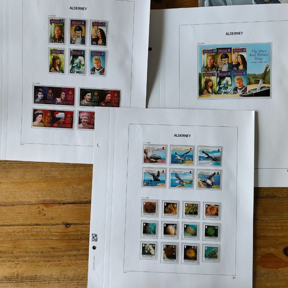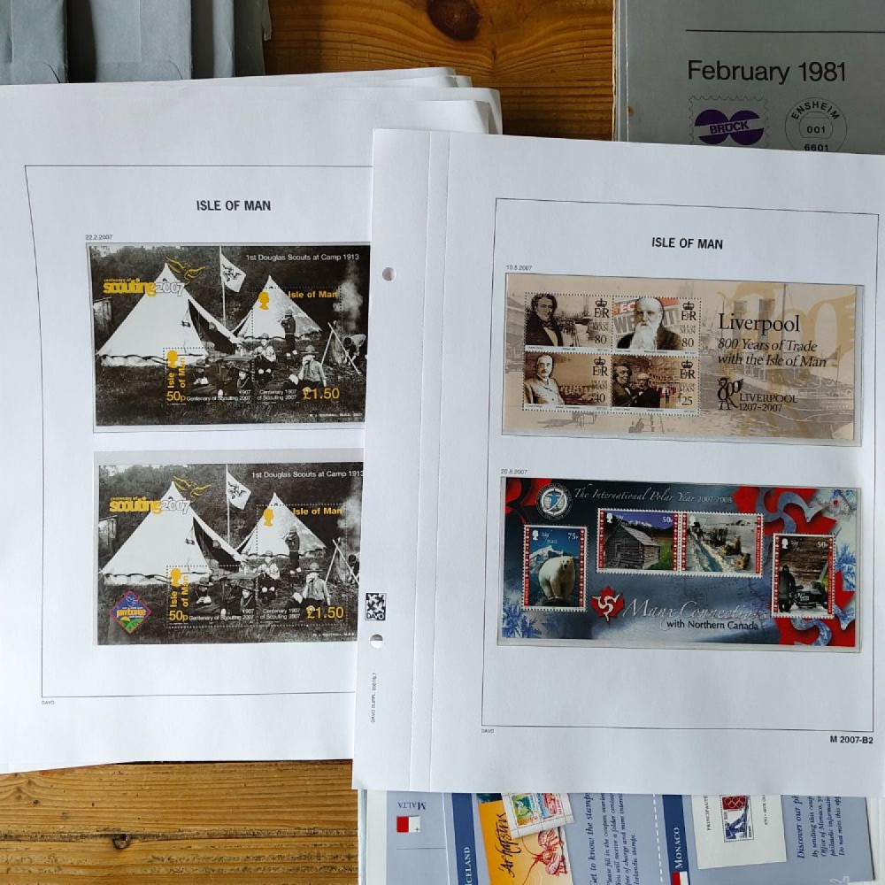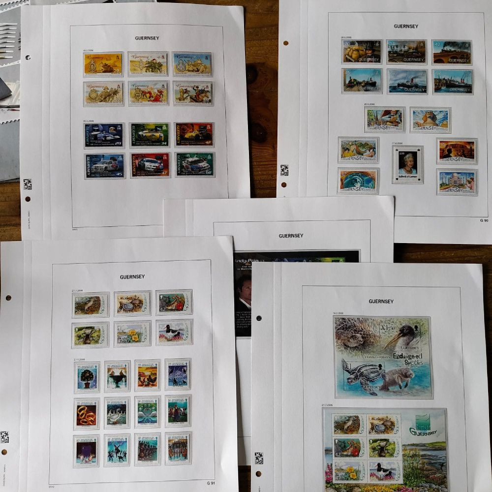 Albové listy Davo, FDC , mnoho platného nominálu GBP a EUR (2006-2007). Holandsko, Anglie, Isle of Many Guernsey