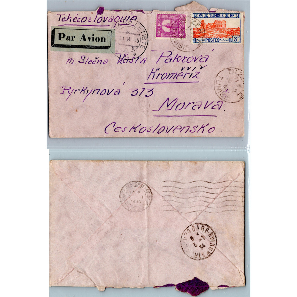 | Položka: | Celistvost Afrika#, Tunisko, Pozoruhodná letecká zásilka z Tunisu do Kroměříže v roce 1934 s frankaturou 3 fr a 25 c tuniskými známkami.KatalogRazítkovaná, použitá známka/položka. |