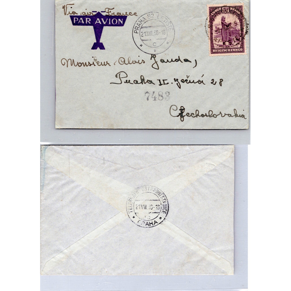| Položka: | Celistvost Afrika#, Belgické Kongo, Letecká zásilka z roku 1936 s 5 Fr známkou Belgického Konga a štítkem Par Avion.KatalogRazítkovaná, použitá známka/položka. |