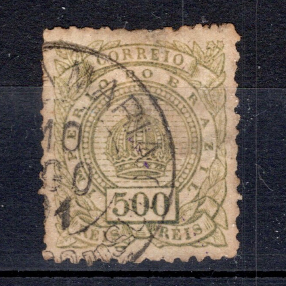 Známka Brazílie, Mi.64 (SG 85a)#, 500 R, 1887 - Cifra, Jižní kříž, Imperiální koruna a Cukrová homole, Císařská koruna, 500 R