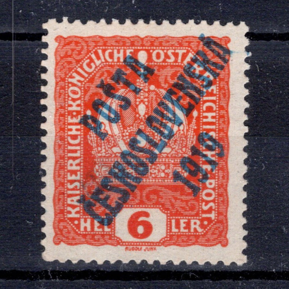 Známka ČSR, Pof.35**, I. typ, 6h Přetisk PČ 1919 – výplatní známky malého formátu z let 1916-1918, 6h