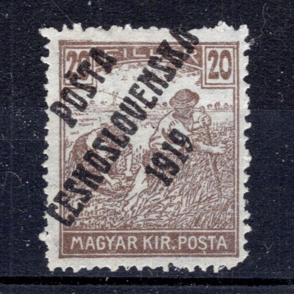Položka:Známka ČSR, Pof.107**, III. typ, 20f přetisk PČ 1919 - Výplatní známky z let 1916-1918, 20fKatalogPofis107Nepoužitá, neražená, čistá známka/položka.