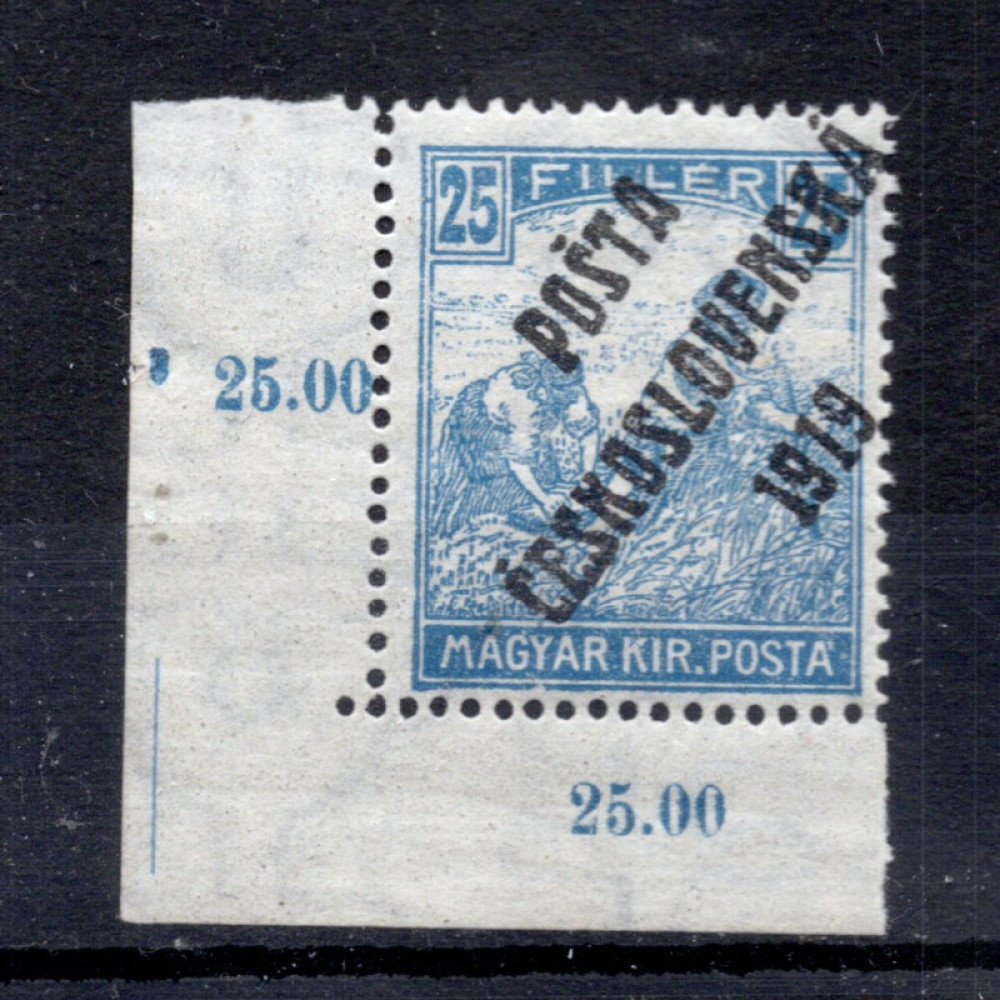 Známka ČSR, Pof.108*, IV. typ, 25f přetisk PČ 1919 - Výplatní známky z let 1916-1918, 25f