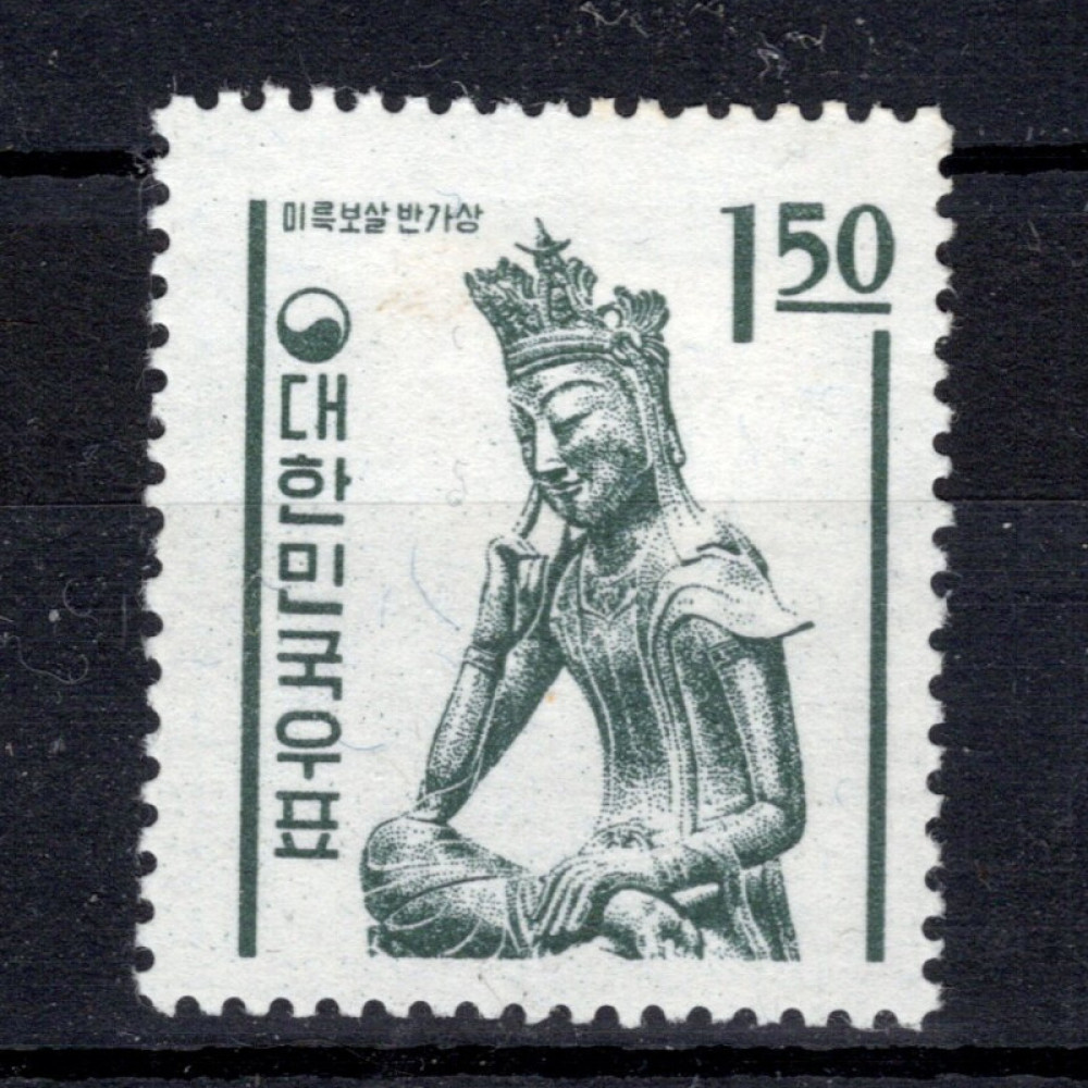 Tagy: Jižní Korea, Mi.446, SG 542, 1.5 ₩, 1966, Bazální Miruk, definitivní vydání, Symboly zemí, sochy, Umění