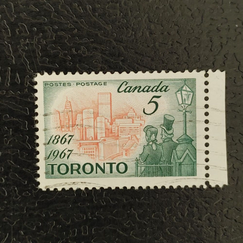 Položka:Známka Kanada, Mi.416 (SG 617)#, 1967, Sté výročí založení Toronta jako hlavního města OntariaKatalogMichel416Stanley Gibbons617475Yvert396Razítkovaná, použitá známka/položka.