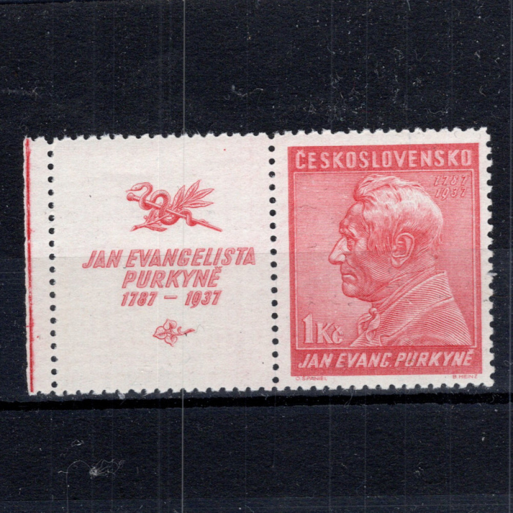 Známka s kupóny ČSR, Pof.323**, 1 Kč 150.výročí narození J.E.Purkyně, 1 Kč
