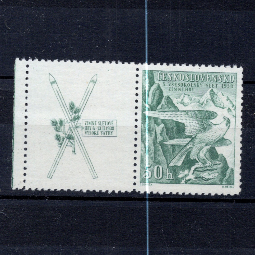 Položka:Známka s kupóny ČSR, Pof.331**, 50h zimní sletové sokolské hry, 50hKatalogPofis331Yvert333Nepoužitá, neražená, čistá známka/položka.