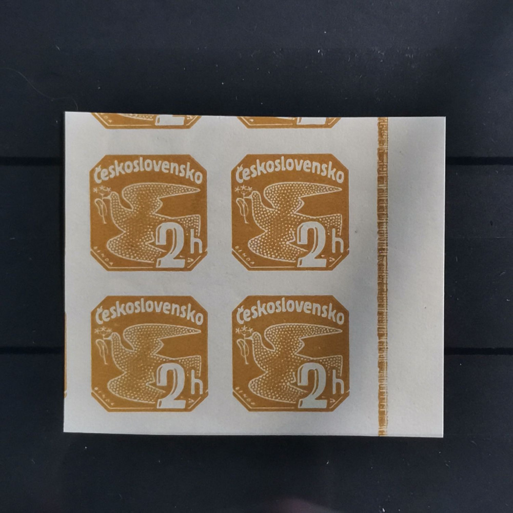 Položka:Čtyřblok ČSR novinové - holubice, 2h, . Michel 364 Pofis NV14 Stanley Gibbons N364 P17 Nepoužitá, neražená, čistá známka.