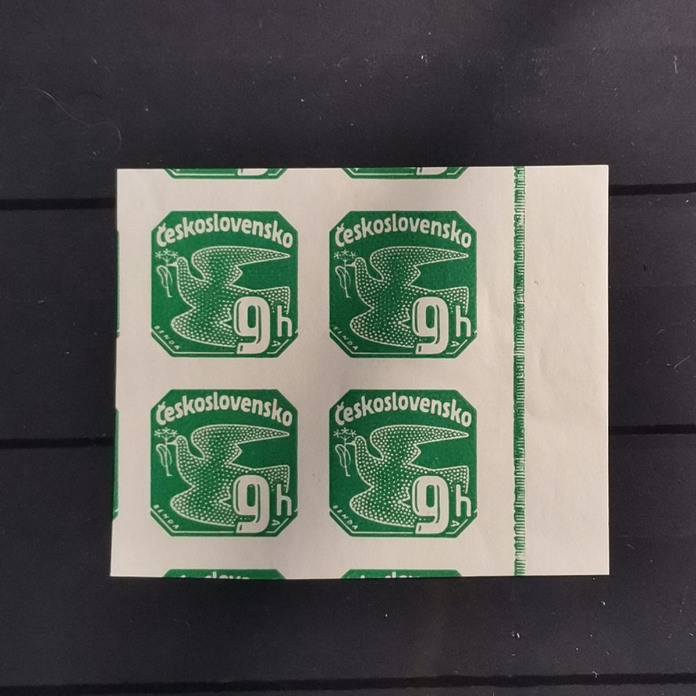 Položka:Čtyřblok ČSR novinové - holubice, 9h, . Michel 367 Pofis NV17 Stanley Gibbons N367 P20 Nepoužitá, neražená, čistá známka.