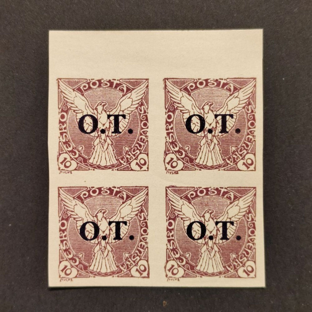 | Položka: | Čtyřblok ČSR, Pof.OT1**, 10h známky pro obchodní tiskoviny (O.T.), 10hKatalogMichel326PofisOT1Nepoužitá, neražená, čistá známka/položka. |