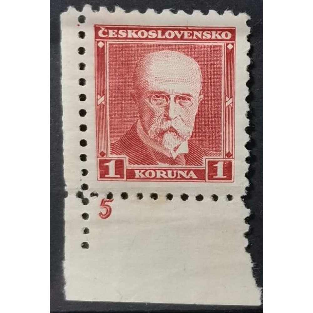 Bližší informace k této položce. Známky s deskovým číslem ČSR T.G.Masaryk, 1 Kč, s DČ 5
