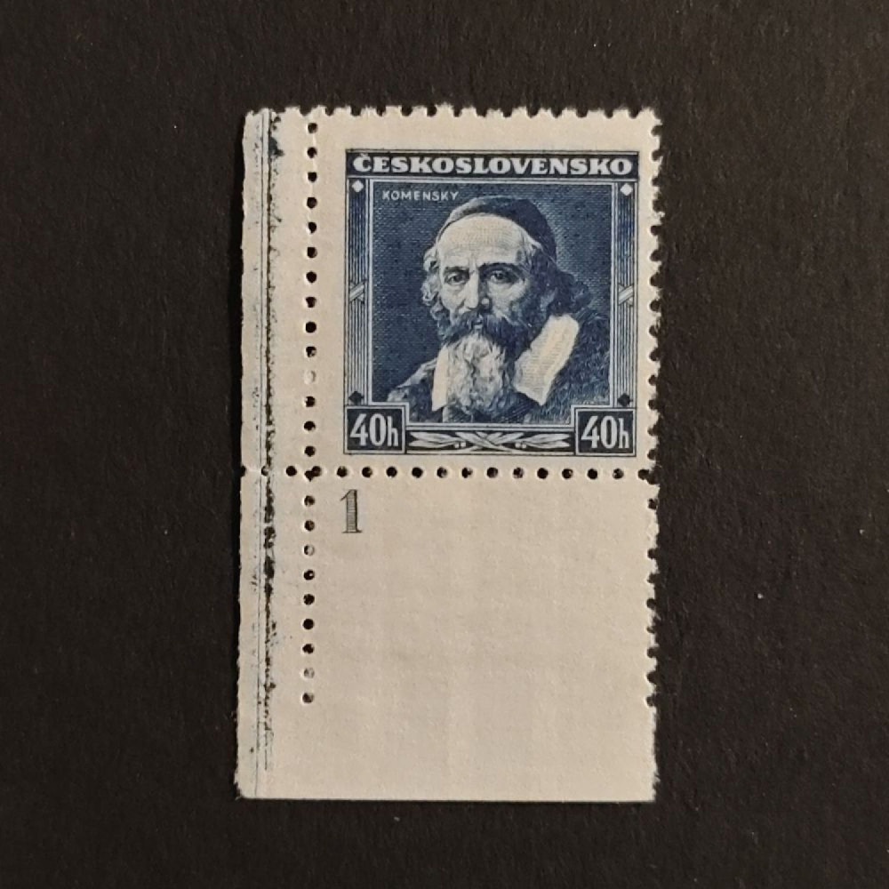 | Stamps with plate numbers Czechoslovakia Portraits of personalities 40h, Catalog Michel 347 Pofis 300 Stanley Gibbons 345 215 MH/ Mint hinged stamp. | |